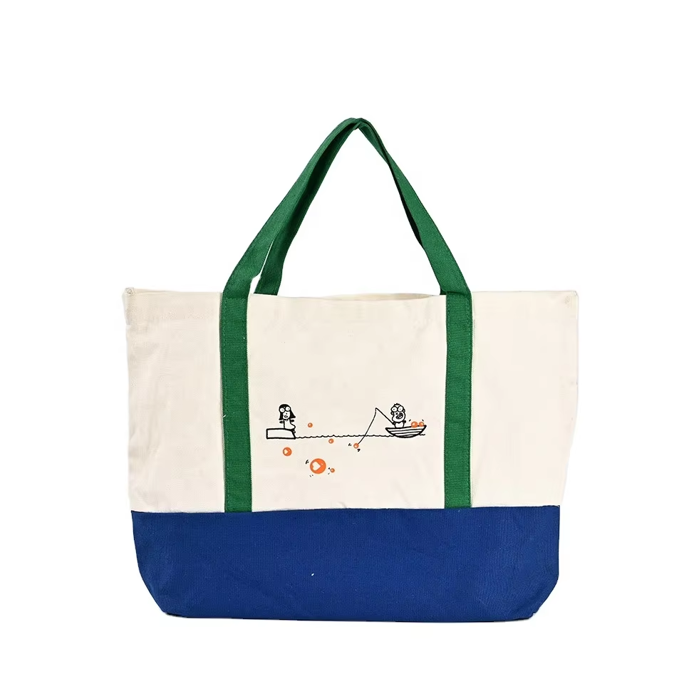 Large Organic Cotton Tote Canvas Bag for Daily Use Wholesale Reusable Zipper Shopping Bags with Customizable Logo Print