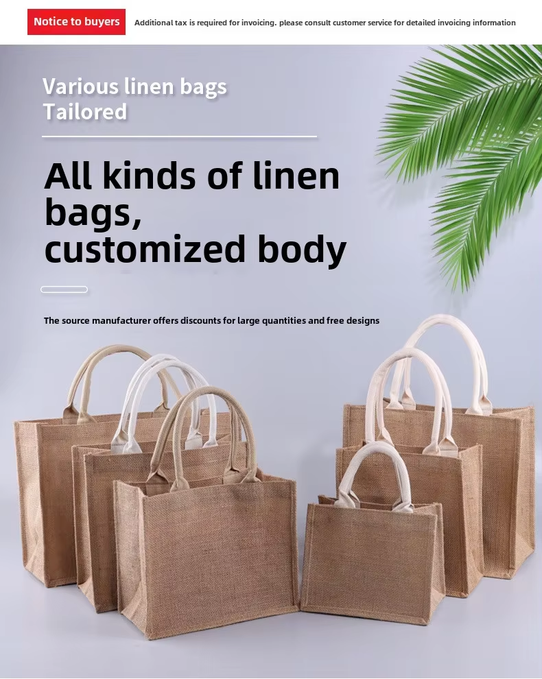 Custom Large or MediumJute Beach Tote Bag with Cartoon Pattern Soft Cotton Handles for Traveling