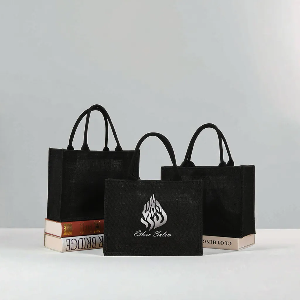 Custom logo cross-border black linen bag modern simple jute handbag and canvas shopping bag