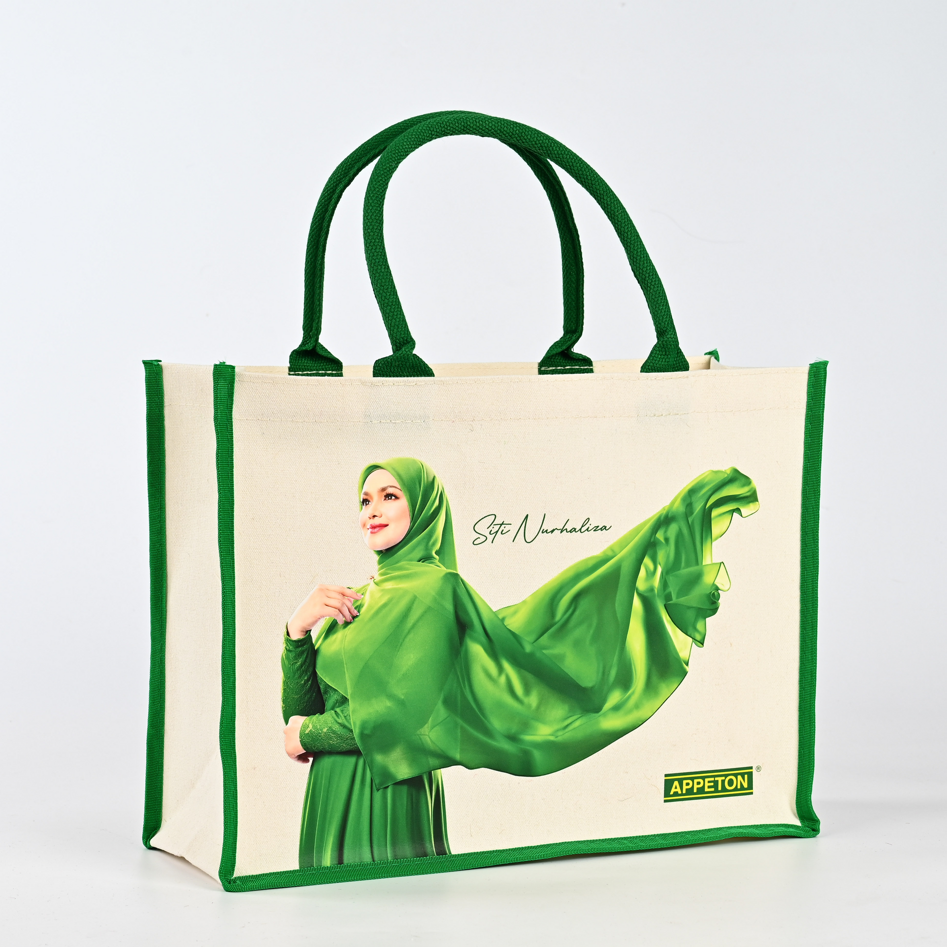 Custom Logo Printed Eco-Friendly Organic Calico Cotton Canvas Tote Bag Recycled Reusable Grocery Shopping Bag with Long Handle