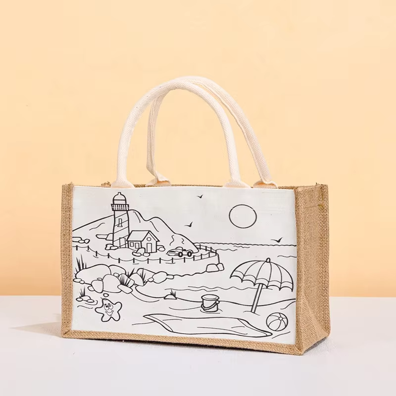 Custom-Made DIY Linen Handbag Retro Jute Bag with Unprinted Same Style Custom Size Tote Bag