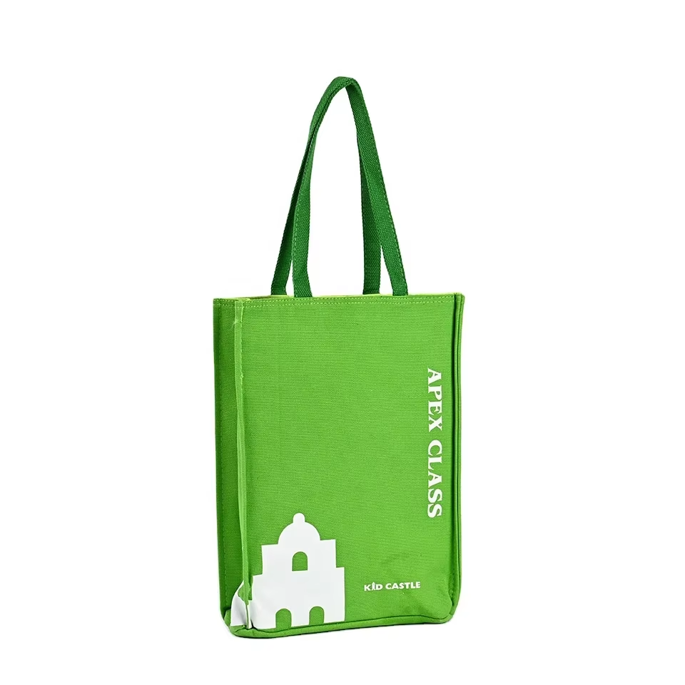 Custom Printed Green Cotton Canvas Tote Bag with Long Handle & Pocket Convenient Digital Printing Shopping Tote Bag