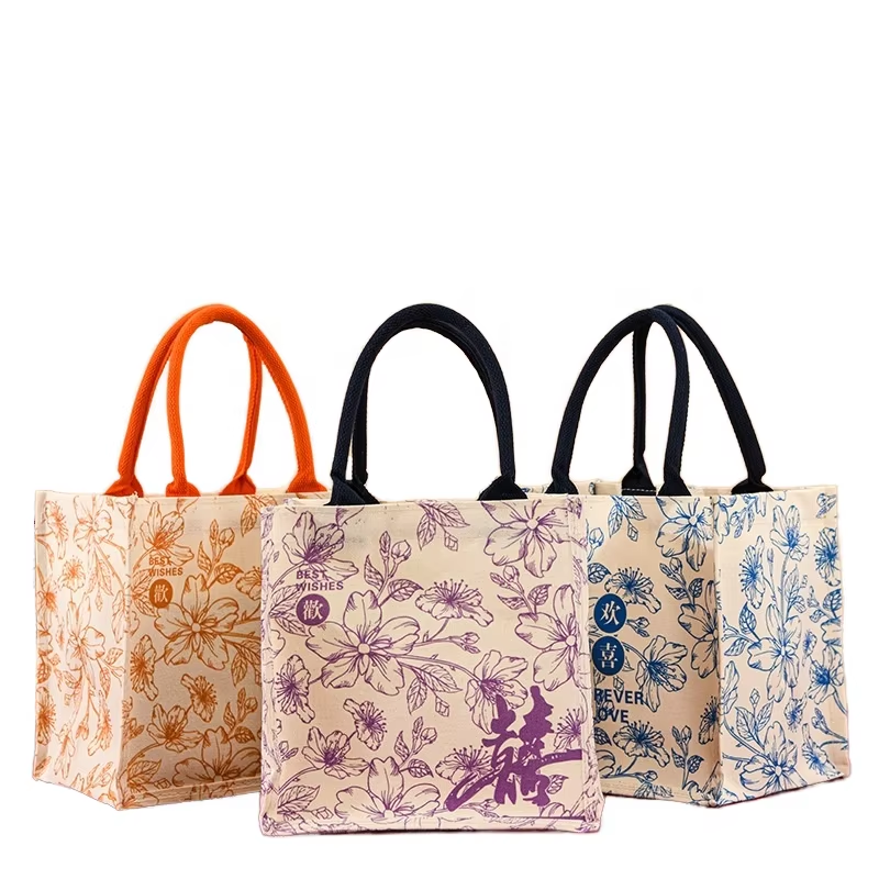 Customized Medium Linen Bags Eco-Friendly Logo-Printable Shopping Natural Jute Cotton Handbags Outing Canvas-Environmentally