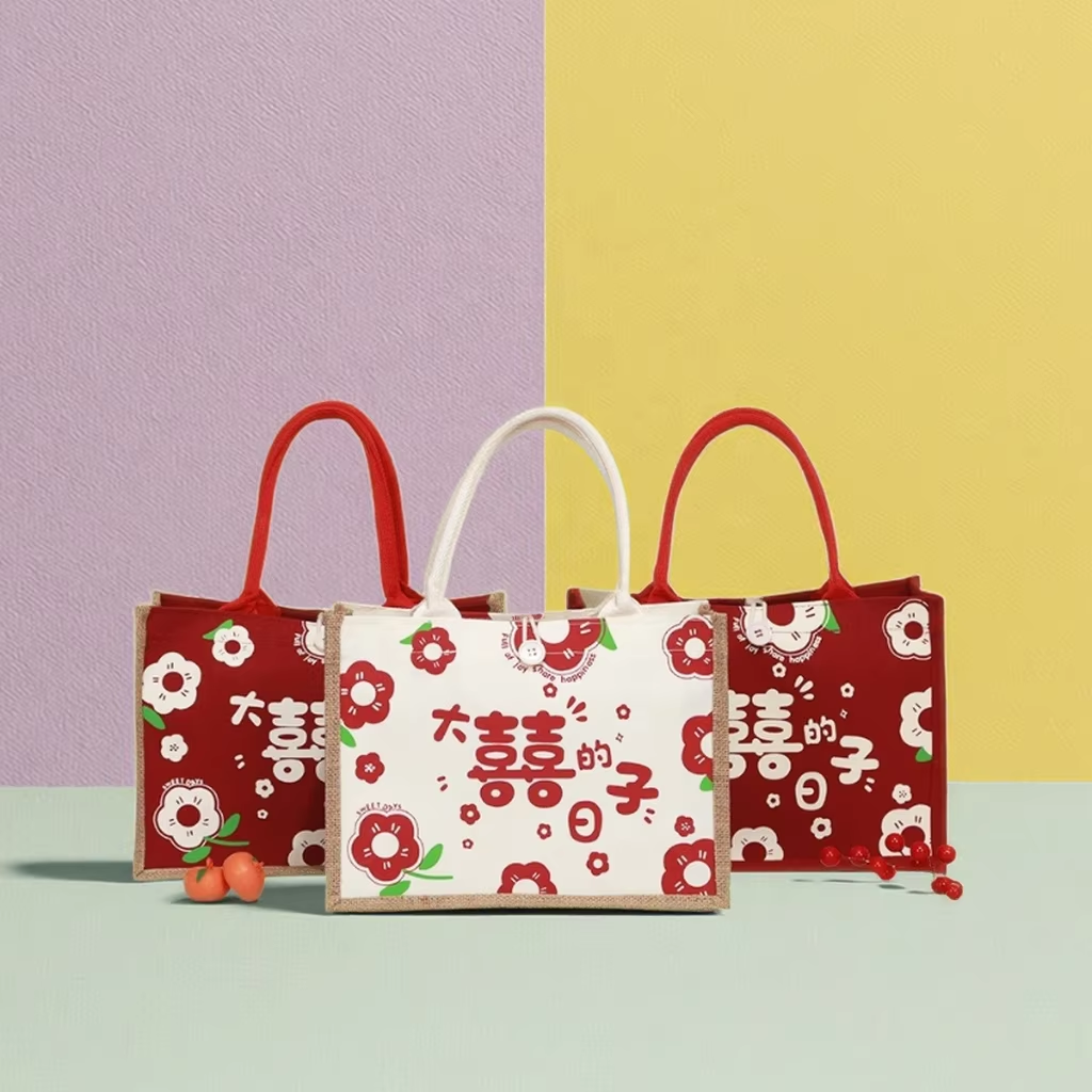 Daxi Portable Linen Red Canvas Bag for Wedding Celebrations Candy Storage-Bridesmaids' Hand Return Gift Wholesale Material