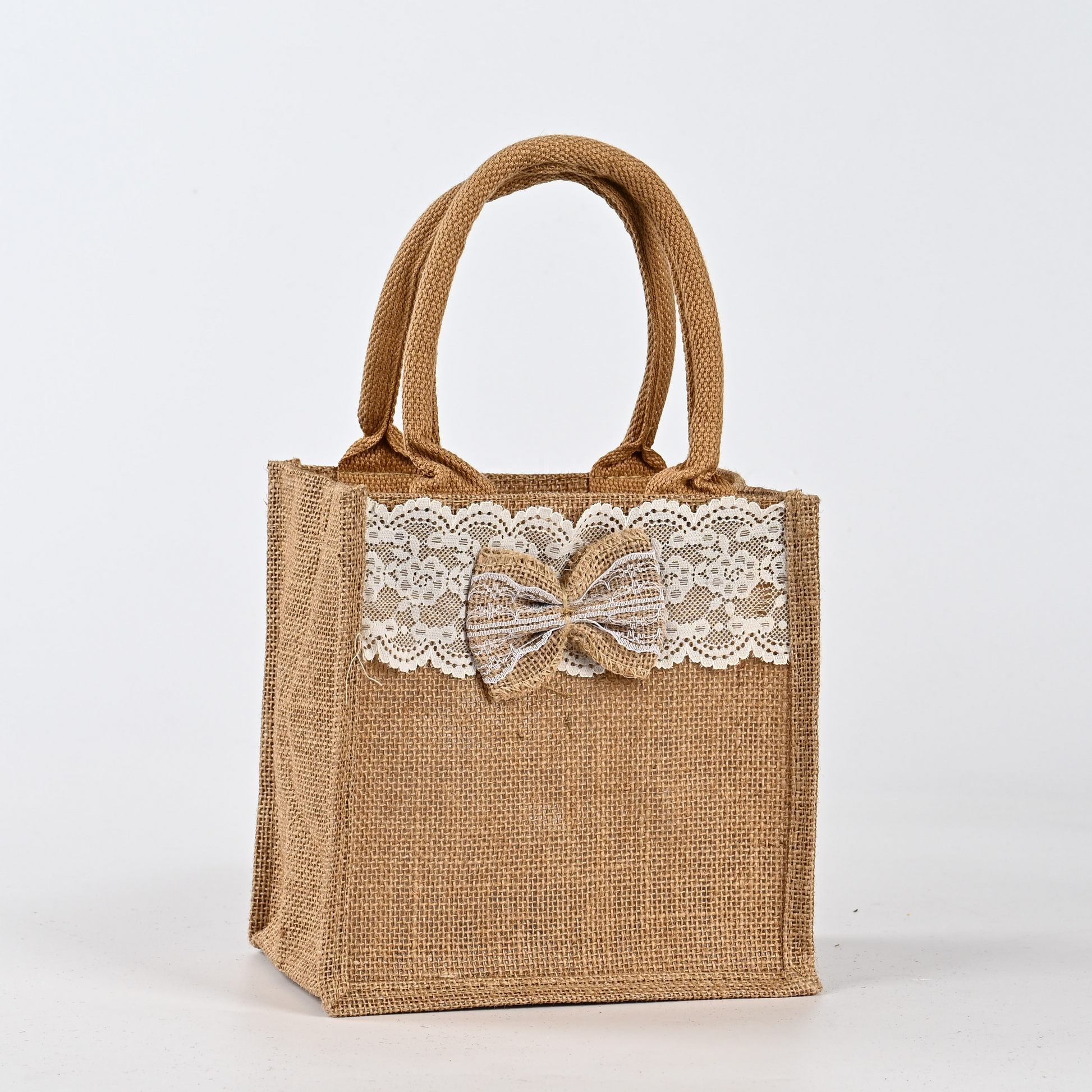 High Quality Custom Jute Burlap Tote Bag with Long Leather Handle Wholesale Beach Wine Bag with Geometric Pattern