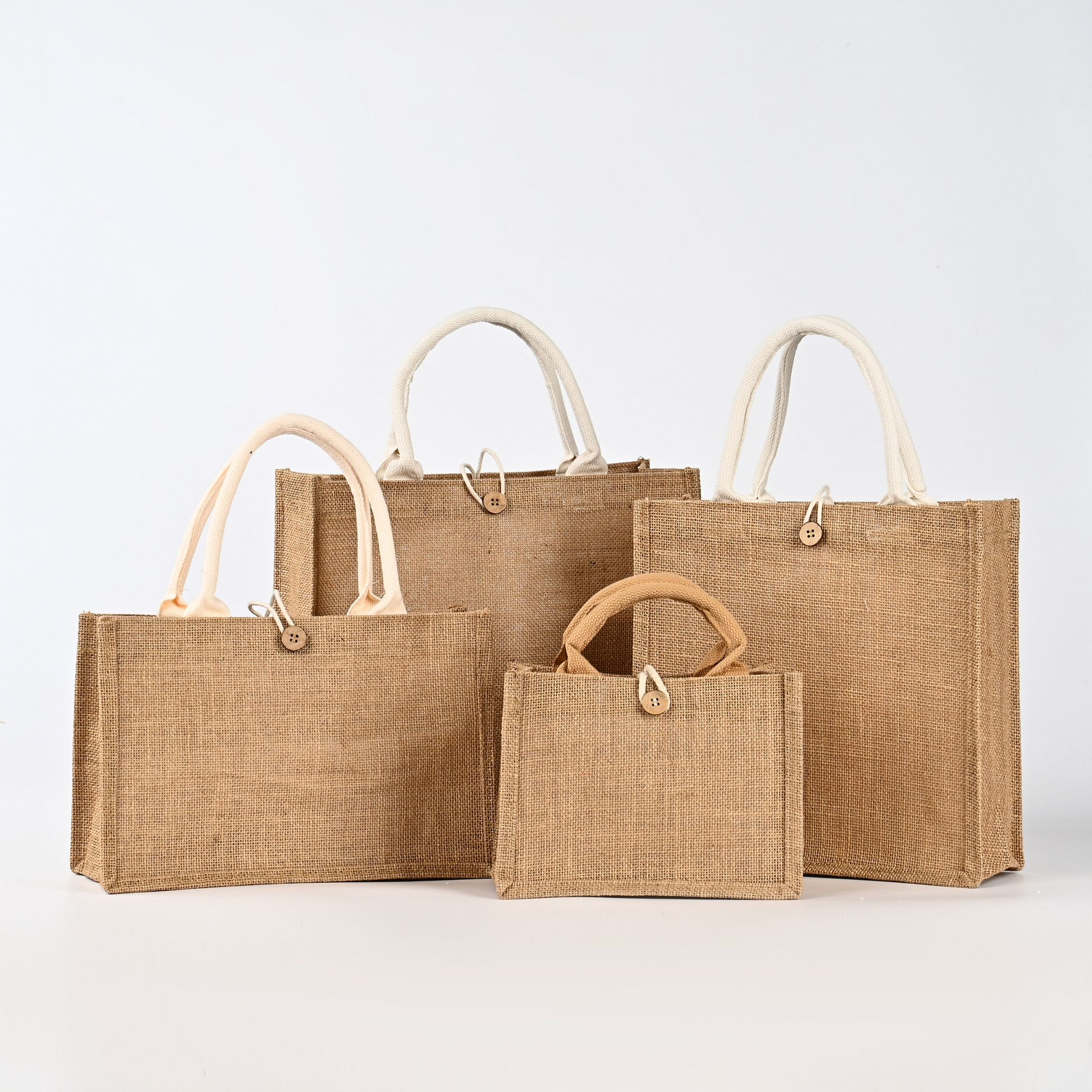High Quality Custom Jute Tote Bags Wholesale Canvas Leopard-Printed Handbags with Long Handles Recycled Coarse Jute Cloth