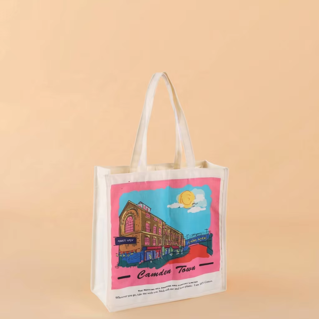 Single Shoulder Portable Cotton Canvas Bag for DIY Shopping Heat Transfer Printed Logo Customisable Letter PP for Foreign Trade