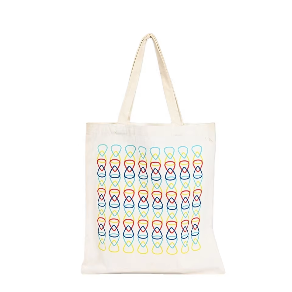 Wholesale Custom Printed Cotton Grocery Tote Bag Reusable Canvas Shopping Bag with Long Handle Cartoon Pattern Promotional Logo